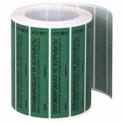 Пломбы самоклеящиеся номерные, КОМПЛЕКТ 1000 шт. (рулон), длина 100 мм, ширина 20 мм, ЗЕЛЕНЫЕ,609666
