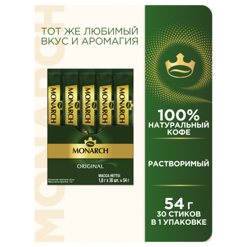Кофе растворимый Monarch "Original", гранулированный, порционный, 30 пакетиков*1.8г