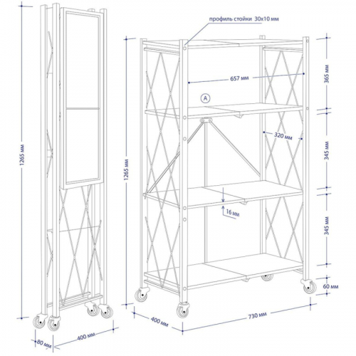 - Максимальная нагрузка на стеллаж: 60 кг