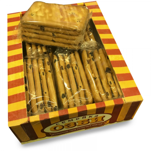 Печенье затяжное Семейка ОЗБИ с изюмом, яблоком и корицей 480 г. Печенье затяжное "Семейка ОЗБИ" с изюмом, яблоком и корицей - это ароматное и сытное угощение, которое сочетает в себе натуральные ингредиенты и пряный вкус корицы. Упаковка весом 480 граммов делает его отличным выбором для семейных чаепитий и перекусов. Состав: мука пшеничная хлебопекарная высшего сорта, виноград сушёный (изюм), масло подсолнечное высокоолеиновое рафинированное дезодорированное, сахар, инвертный сироп (сахар, регуляторы кислотности (молочная кислота, гидрокарбонат натрия (сода пищевая))), вода питьевая, меланж яичный сухой, молоко сухое обезжиренное, соль пищевая, разрыхлители (гидрокарбонат аммония, гидрокарбонат натрия (сода пищевая)), экстракт солодовый (солод ячменный, вода питьевая), белок яичный сухой, эмульгатор - лецитины (соевый). Продукция производится на предприятии, где используются кунжут, орехи. Возможно наличие косточек и их фрагментов. Пищевая ценность на 100 г: белки - 7,3 г; жиры - 13,3 г; углеводы - 68,0 г. Энергетическая ценность: 1772,2 кДж (420,9 ккал). ТУ 10.72.12-030-00346201-2017. Вес: 480 г Условия хранения: хранить в хорошо проветриваемых сухих чистых помещениях, не имеющих посторонних запахов, не заражённых вредителями хлебных запасов при температуре 18 С и относительной влажности не более 75%. Срок годности: 6 месяцев.