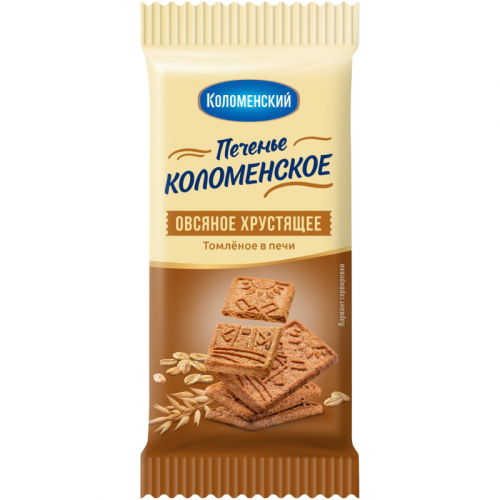 Печенье злаковое Коломенское овсяное (120 штук по 30 г) Овсяное печенье любимо всеми с детства. Печенье 'Коломенское' имеет необычную, хрустящую и тающую во рту текстуру. В составе печенья много овсяной муки и овсяных хлопьев, содержащих витамины, минералы и антиоксиданты. Нежное и хрустящее печенье Коломенское выпекается по особой итальянской технологии и обладает тающей во рту текстурой. Рецептуры печенья соответствуют современным трендам и обогащены полезными веществами. Печенье не содержит пальмового масла или маргарина на основе пальмового масла. Высокоолеиновое подсолнечное масло, на котором сделано печенье, при высоких температурах выпечки не образует транс-жиров: содержит природный антиоксидант витамин Е; Омега-3 и Омега-9. По вкусу печенье максимально приближено к домашнему. Состав продукта: мука пшеничная хлебопекарная высшего сорта, сахар белый, мука овсяная, масло подсолнечное высокоолеиновое рафинированное дезодорированное, хлопья овсяные, вода, виноград сушёный (изюм), крахмал пшеничный, экстракт солодовый (солод ячменный, вода), соль, разрыхлители: карбонат аммония, гидрокарбонат натрия (сода пищевая), эмульгатор лецитин подсолнечный, ароматизатор 'Ванилин', корица. Продукт может содержать следы арахиса, орехов, молочных продуктов, яичных продуктов. Пищевая ценность на 100 г: белки - 7,0 г; жиры - 17,0 г; углеводы - 70,0 г. Энергетическая ценность: 1940 кДж (460 ккал). ТУ 10.72.12-061-68861009-2019. Условия хранения: хранить в сухом месте и относительной влажности воздуха не более 75%. Температура хранения (18+/-5) C. Срок хранения: 10 месяцев Страна производства: Россия.
