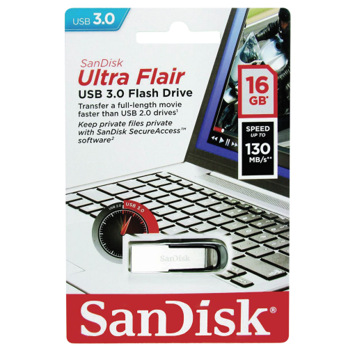 Флеш-диск SANDISK Ultra Flair USB 3.0 гарантирует быструю передачу файлов. Экономьте время — отдайте предпочтение высокой скорости USB 3.0, которая достигает 130 МБ/с.