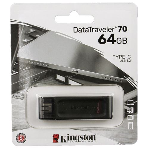 Флеш-диск 64GB KINGSTON DataTraveler 70, разъем Type-C 3.2, черный, DT70/64GB