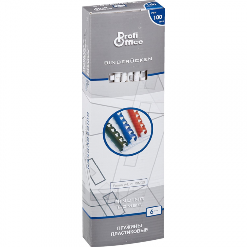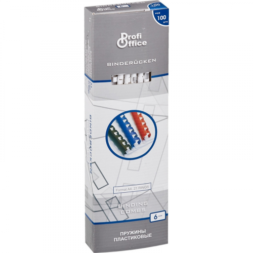 Пружины для переплета пластиковые ProfiOffice 6 мм белые (100 штук в упаковке). Предназначены для подготовки брошюр при помощи брошюровщика для переплета на пластиковую пружину. Диаметр 6 мм, цвет белый. Скрепляют брошюру с максимальным содержанием 1-25 листов. В упаковке 100 шт.