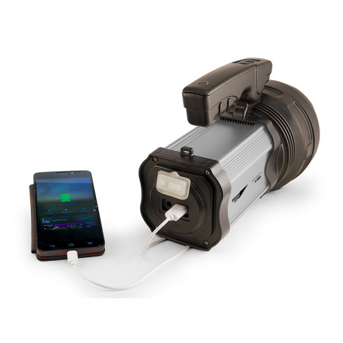 Аккумуляторный светодиодный фонарь Яркий Луч S-300A Мегаватт. Светодиод CREE XM-L мощностью 10 Ватт 300 лм обеспечивает направленный свет дальностью до 418 метров. Два ярких СОВ светодиода суммарной мощностью 10 Ватт 450 лм на боковой поверхности для заливного света. Фонарь имеет: 3 режима работы CREE XM-L светодиода: 100% (5 часов работы), 25% (20 часов работы) и мигающий. 2 режима работы СОВ светодиодов: 100% (4,5 часа работы) и 25% (18 часов работы) Возможность USB-подзарядки телефонов, планшетов от аккумулятора фонаря, то есть выполняет функции power bank (пауэрбанк). Штатное зарядное устройство с индикатором заряда позволяет контролировать наличие заряда. Удобная эргономичная ручка. Продолжительная работа на кислотно-свинцовом аккумуляторе 4 В 7000 мАч (5 часов в режиме 100%). Во время зарядки фонаря светодиод на зарядном устройстве загорится красным цветом. При полностью заряженном аккумуляторе цвет поменяется на зеленый. Время зарядки аккумулятора составляет 13 - 15 ч. Материал корпуса: ABS-пластик и алюминий. В комплект входят ремень и зарядное устройство. Гарантия 2 года. Внешний вид и/или характеристики товара могут быть изменены производителем в соответствии с производственным процессом.