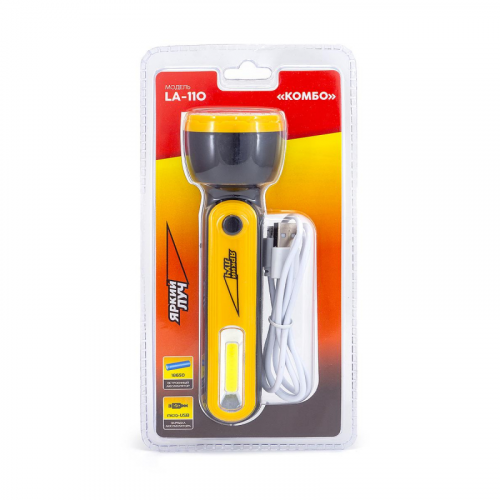 Фонарь светодиодный Яркий луч LA-110 Комбо аккумуляторный Два режима работы. Направленный свет - 100 лм. Рассеянный свет COB - 110 лм. Встроенныйлитий-ионный аккумулятор: 1500 мАч. Индикатор процесса зарядки. Аккумуляторный светодиодный фонарь предназначен для бытового использования. Совмещает в себе направленный свет для освещения отдаленных объектов и рассеянный свет для комфортного освещения вблизи. 'Комбо' очень прост в использовании - всего два режима. Его можно легко зарядить, использовав, привычную всем зарядку от телефона. Фонарь заряжается от выхода USB 5 В. Предпочтительный ток зарядки 1 А. Для зарядки можно использовать любое устройство с выходом USB. Время полной зарядки зависит от источника питания и степени разряда аккумулятора. В процессе заряда горит красный индикаторный светодиод. При полном заряде загорится зеленый светодиод. Для включения фонаря используйте кнопочный выключатель, расположенный на корпусе. Первое нажатие включает направленный свет. Второе включает рассеянный свет COB. Третье выключает фонарь. При заметном снижении яркости света поставьте фонарь на зарядку. Не допускайте глубокого разряда аккумулятора. Запрещено хранение фонаря с разряженным аккумулятором, это ведет к выходу аккумулятора из строя. Для зарядки подключите разъем кабеля (входит в комплект) микро USB к разъему на корпусе фонаря. Разъем кабеля USB к источнику питания. Гарантия 2 года. Внешний вид и/или характеристики товара могут быть изменены производителем в соответствии с производственным процессом.