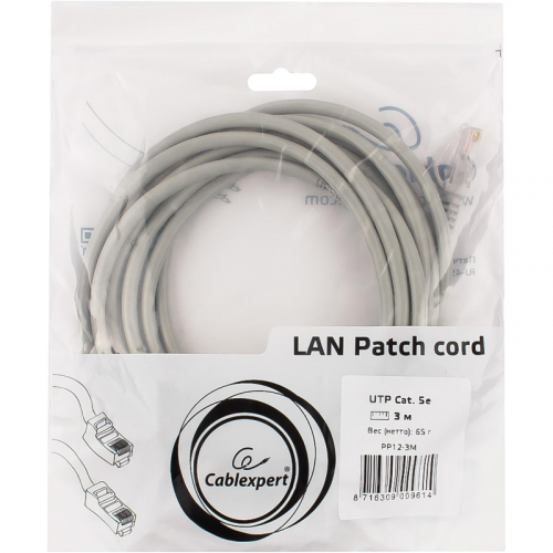 Кабель витая пара Cablexpert PP12-3M 5e 3 м Внешний вид и/или характеристики товара могут быть изменены производителем в соответствии с производственным процессом.