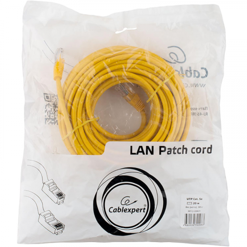 Кабель витая пара Cablexpert PP12-20M/Y 5e 20 м Внешний вид и/или характеристики товара могут быть изменены производителем в соответствии с производственным процессом.