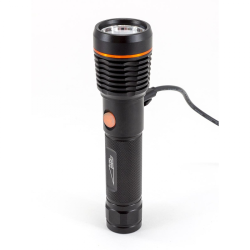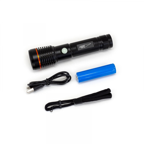 Фонарь светодиодный Яркий луч T7v.3 Osram P9 аккумуляторный Мощный компактный фонарь с нейтральным белым светом и встроенным зарядным устройством. Питание от Li-lon аккумулятора формата 18650. Фонарь T7 SWORDv. 3 снабжен мощным современным светодиодом Osram P9 600 лм. При длине 14,8 см легко помещается в карман, чтобы стать незаменимым помощником в темное время суток. Обратите внимание, в комплектацию данного фонаря входит литиевый аккумулятор 18650 2200 мАч, встроена индикация процесса зарядки (горит красный диод). При достижении полного заряда загорается зеленый. Основные характеристики фонаря: - источник света: светодиод Osram P9 600 люмен; - два режима постоянного света 100% и 20%, режим - строб; - диммирование яркости света; - цветовая температура 5000К; - дальность света до 200 м; - время работы в режиме 100% - 3 часа; - литий-ионный аккумулятор 18650 3.7 В 2200 мАч; - влагозащита IPX4. Для включения нажмите на кнопку. Фонарь всегда включается в режиме 100% яркости. Повторное нажатие в течение 5 секунд переключает свет в режим 20%. Нажмите и удерживайте кнопку на включенном фонаре для плавного изменения яркости (диммирования). При достижении максимального и минимального уровня фонарь мигнет. Режим 'строб' включается двойным кликом. Комплектация 1. Фонарь 2. Аккумулятор 18650 2200 мАч 3. Ремешок на руку 4. USB-кабель Размеры: длина 148 мм, диаметр головы 37 мм. Вес: 123 г (без аккумулятора). Гарантия 2 года. Внешний вид и/или характеристики товара могут быть изменены производителем в соответствии с производственным процессом.