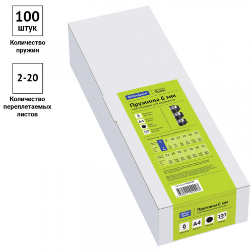 Пластиковые пружины OfficeSpace черного цвета диаметром 6мм предназначены для переплета документов. Легко выдерживают многократное раскрытие при необходимости добавить или удалить листы из готовой брошюры. Рекомендуемый объем брошюры при использовании данного диаметра пружины: 2-20 листов.