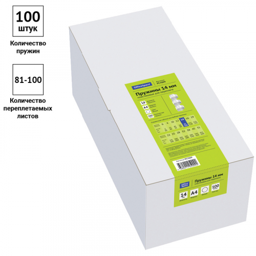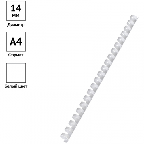 Пружины пластик D=14мм OfficeSpace, белый, 100шт.