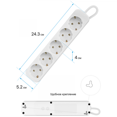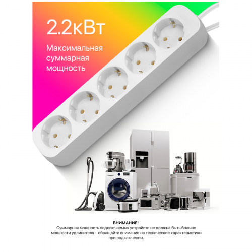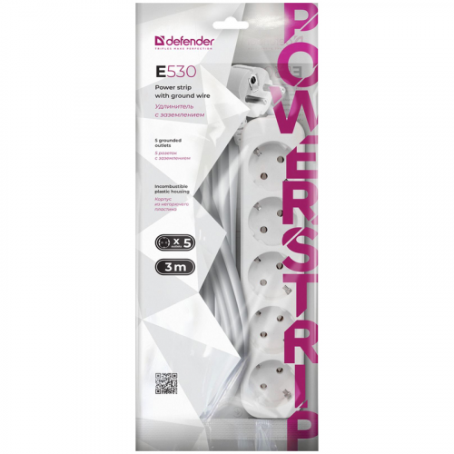 Удлинитель Defender E530, 5 розеток, с заземлением, 3м, белый