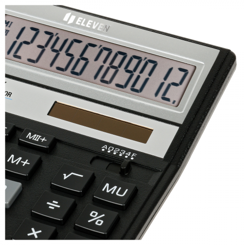 12-ти разрядный настольный калькулятор Eleven SDC-888XBK предназначен для выполнения арифметических операций. Оптимальный набор функций поможет автоматизировать расчёты: вычисление квадратного корня, коррекция последнего введенного значения, кнопка «00», двойная память, расчёт наценки. Двойное питание (солнечная батарея + батарея GP189(LR54)) и автоматическое отключение увеличивают срок службы. Размер калькулятора – 158*203*31 мм, вес – 228 г, цвет – чёрный. Эргономичная форма, крупные клавиши, устойчивые прорезиненные ножки позволят работать эффективнее. Упакован в картонную коробку. Гарантия 5 лет.