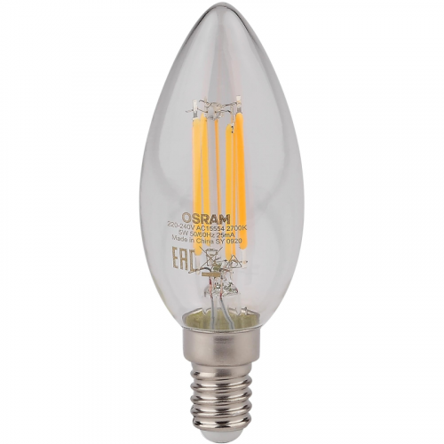 Лампа светодиодная Osram 5 Вт Е14 (В, 2700 К, 520 Лм, 220 В, 4058075230354).Светодиодная лампа Osram с цоколем E14 является энергоэффективным решением для освещения. Она обеспечивает тёплый белый свет (температура цвета 2700 К) с мощностью 5 Вт. Световой поток лампы составляет 520 лм, что соответствует лампам накаливания мощностью 60 Вт. Лампа работает от напряжения 220 В и имеет срок службы до 15000 часов. Колба прозрачная, форма C, с углом рассеивания светового пучка 300. Длина лампы составляет 98 мм, а индекс цветопередачи выше 80%. Лампа оснащена филаментами. Товар сертифицирован.Внешний вид и/или характеристики товара могут быть изменены производителем в соответствии с производственным процессом.