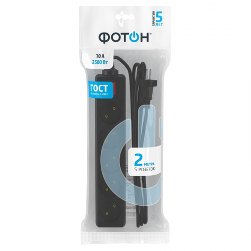 Удлинитель Фотон 10-25S 5 розеток 2 м с выключателем черный (22726) Внешний вид и/или характеристики товара могут быть изменены производителем в соответствии с производственным процессом.