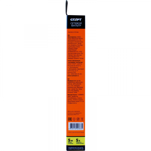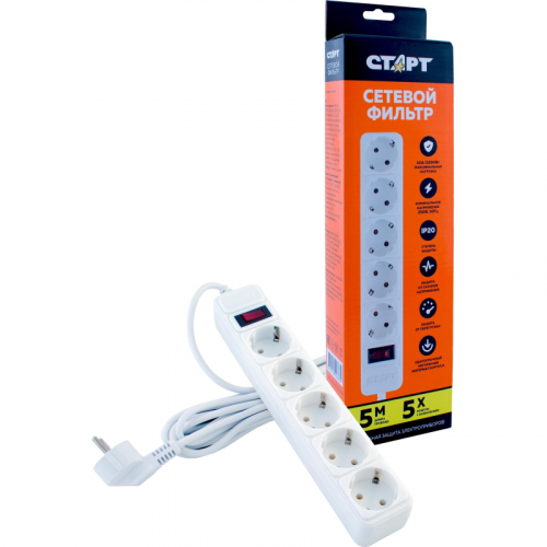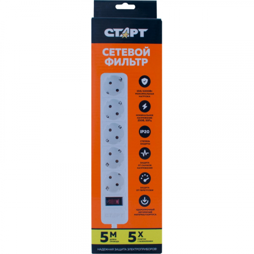 Сетевой фильтр Старт на 5 розеток 5 метров Внешний вид и/или характеристики товара могут быть изменены производителем в соответствии с производственным процессом.