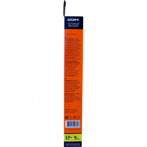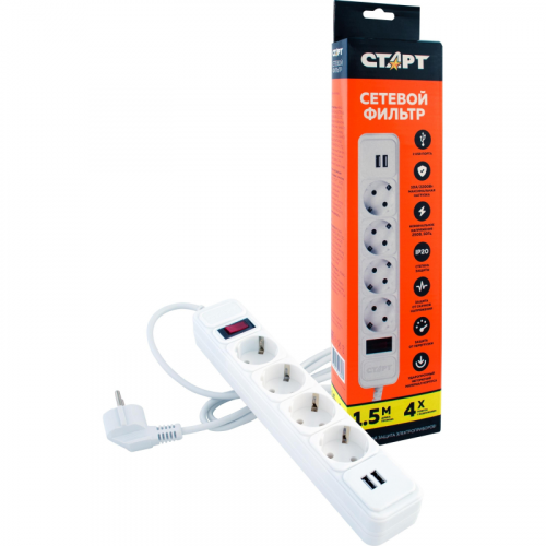 Сетевой фильтр Старт на 4 розетки 1.5 метра Внешний вид и/или характеристики товара могут быть изменены производителем в соответствии с производственным процессом.