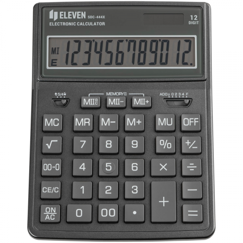 12-ти разрядный настольный калькулятор Eleven SDC-444X-GR предназначен для выполнения арифметических операций. Оптимальный набор функций поможет автоматизировать расчёты: вычисление квадратного корня, коррекция последнего введенного значения, кнопка «00», двойная память, расчёт наценки, смена знака. Двойное питание (солнечная батарея + батарея LR44) и автоматическое отключение увеличивают срок службы. Размер калькулятора – 155*204*33 мм, вес – 230 г, цвет – серый. Упакован в картонную коробку. Гарантия 5 лет.