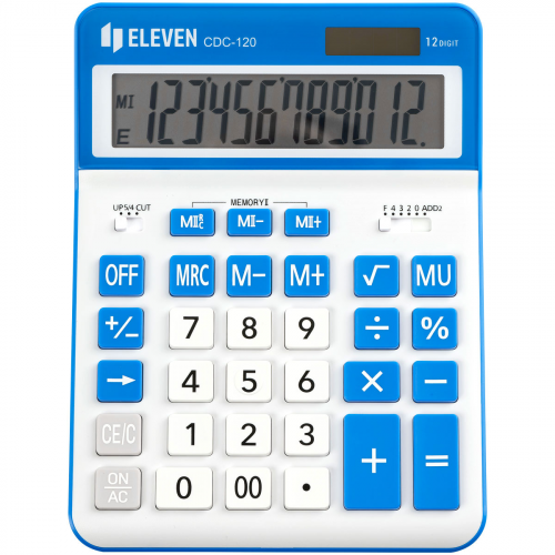 12-ти разрядный настольный калькулятор Eleven CDC-120-WH/NV предназначен для выполнения арифметических операций. Размер калькулятора – 155*206*38 мм, вес – 230,9 г, цвет – белый/тёмно-синий. Незаменимый помощник в офисе, школе и дома. Оптимальный набор функций поможет автоматизировать расчёты: коррекция последнего введенного значения, расчёт наценки, кнопка «00», двойная память. Двойное питание (солнечная батарея + батарея LR44) и автоматическое отключение увеличивают срок службы. Упакован в картонную коробку. Гарантия – 5 лет.