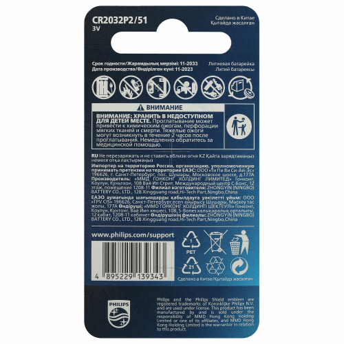 • Тип элемента питания: Батарея - "пуговица" / литиевая