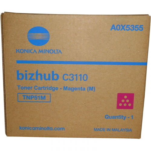 Картридж лазерный Konica Minolta TNP-51M A0X5355 пурпурный оригинальныйВнимание! Перед установкой, картридж необходимо несколько раз встряхнуть.Внешний вид и/или характеристики товара могут быть изменены производителем в соответствии с производственным процессом.