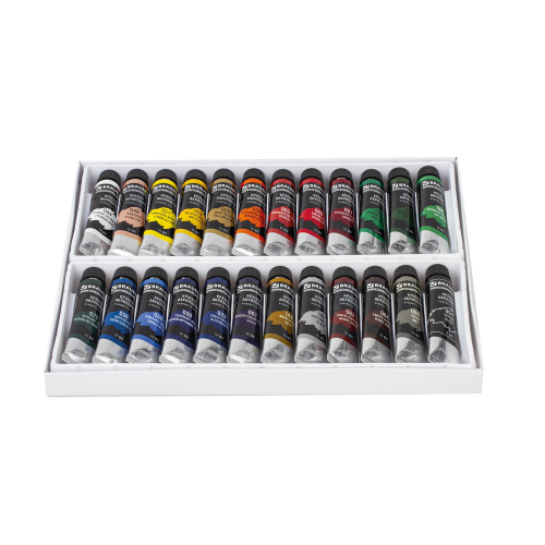 Упаковка: картонная коробка Количество цветов в наборе: 24 Серия: Classic Тип фасовки: туба Объем: 12 мл Спецэффект цвета: глянцевый Цвет: белила титановые (044), голубой ФЦ (039), желтая средняя (023), зеленый светлый (062), зеленый средний (063), зеленый ФЦ (072), золотистый (144), киноварь (006), кобальт синий (038), красная светлая (003), красная темная (001), лимонная желтая (021), оранжево-желтый (026), охра желтая (029), серебристый (142), серый (055), сиена жженая (082), телесный (046), травяной зеленый (066), ультрамарин (033), умбра жженая (084), фиолетовый темный (091), церулеум (036), черный (051) Тип краски: акриловые художественные