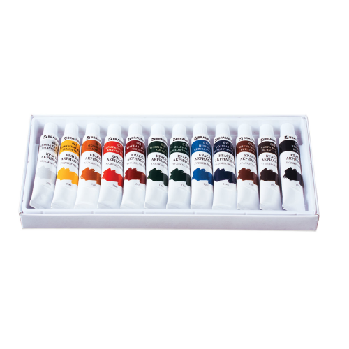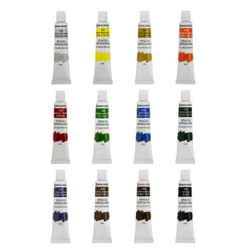 Краски акриловые художественные BRAUBERG ART DEBUT, НАБОР 12 цветов по 12 мл, в тубах, 191125