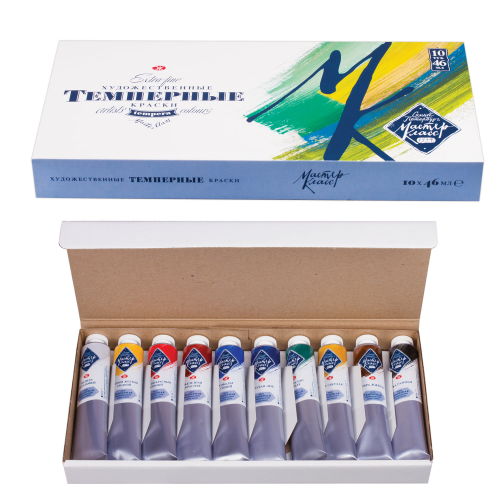 - Цвет: белила титановые, голубая «ФЦ»/церулеум, железная красная/краплак красный, кадмий желтый средний, кадмий красный светлый или кадмий красный темный, окись хрома/изумрудно-зеленая, охра светлая, сажа газовая, ультрамарин/кобальт синий, умбра жженая/сиена жженая