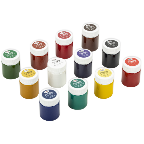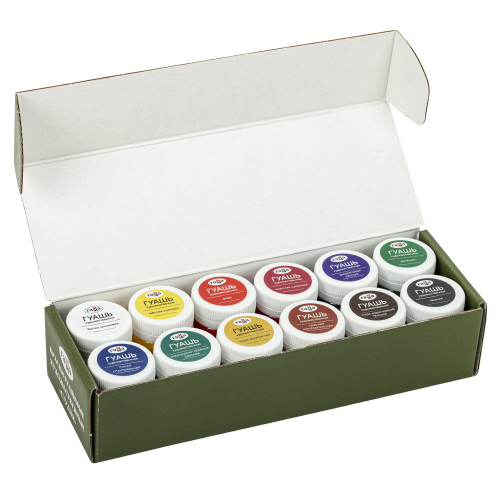 Краски имеют яркие цвета, каждый флакон оснащен завинчивающейся крышкой. Гуашь предназначена для выполнения творческих работ в начальных классах и дошкольных учреждениях, а также дома.