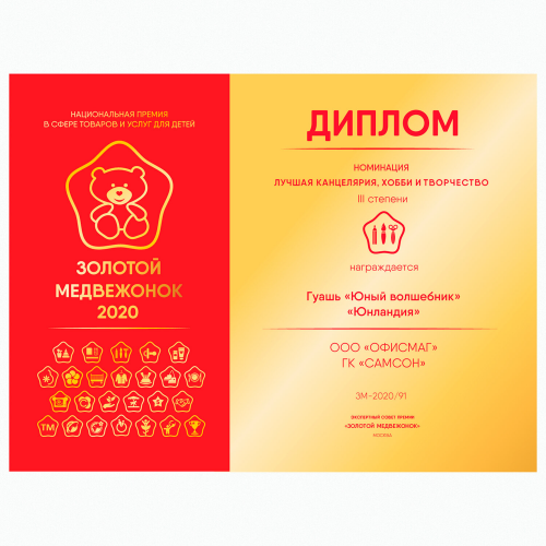 Гуашь высшего качества ЮНЛАНДИЯ поможет создать юным художникам первые шедевры. Идеальна для нанесения на бумагу, картон, дерево, стекло, керамику.