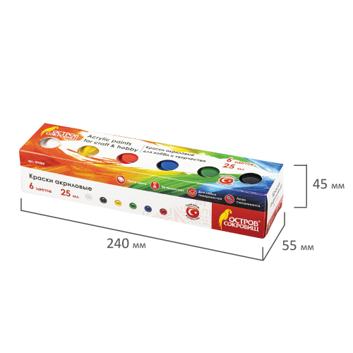 Акриловые краски ОСТРОВ СОКРОВИЩ отлично подойдут для рисования и оформительских работ. Легко наносятся практически на любую поверхность. Обеспечивают быстрое высыхание без изменения цвета.