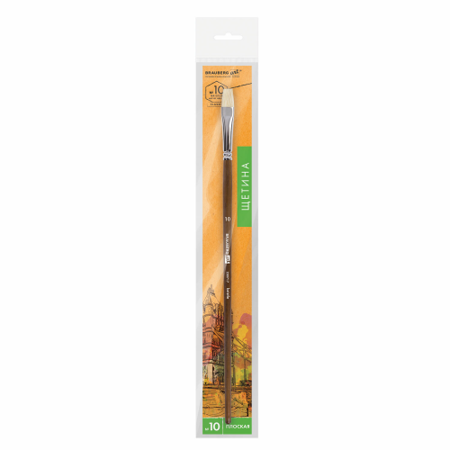 Кисть художественная профессиональная BRAUBERG ART CLASSIC, щетина, плоская, № 10, длинная ручка, 200717