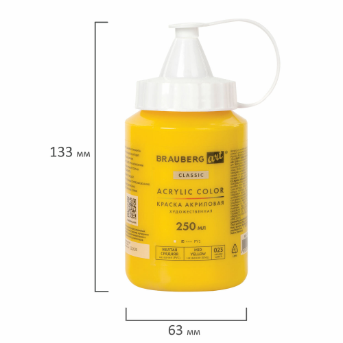 Художественная акриловая краска BRAUBERG ART CLASSIC предназначена для живописи и декоративных работ. Используется при работе почти на любой поверхности: бумаге, картоне, холсте, дереве, коже и т.д.