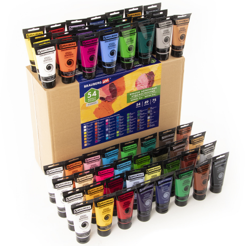 Краски акриловые художественные BRAUBERG ART CLASSIC, НАБОР 54 шт, 49 цветов, в тубах 75 мл, 191724