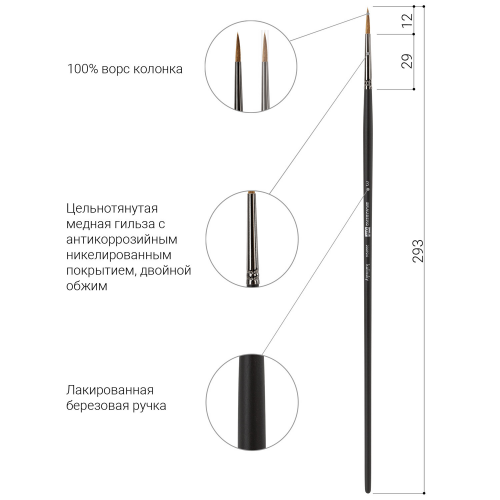 Кисть художественная проф. BRAUBERG ART CLASSIC, колонок, круглая, № 3, длинная ручка, 200924