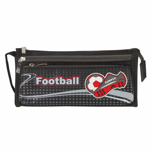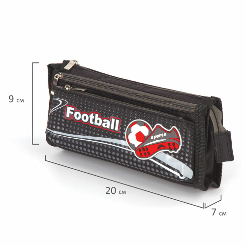 Пенал ЮНЛАНДИЯ для мальчиков, 3 отделения, мягкий, "Футбол", черный, 20х7х9 см, 228978