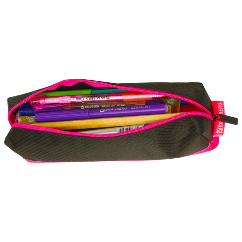 Пенал-косметичка BRAUBERG, мягкий, "Black&Bright", черно-розовый, 21х5х5 см, 229006