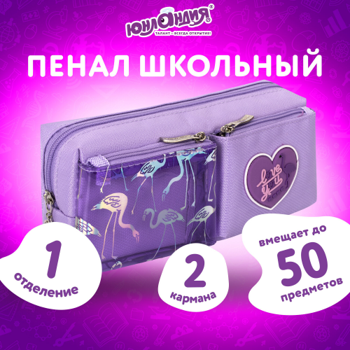 Пенал-косметичка ЮНЛАНДИЯ "Flamingo" предназначен для хранения школьных принадлежностей, вмещает до 50 канцелярских предметов стандартного размера. Удобный и вместительный пенал не займет много места в школьном ранце или рюкзаке.