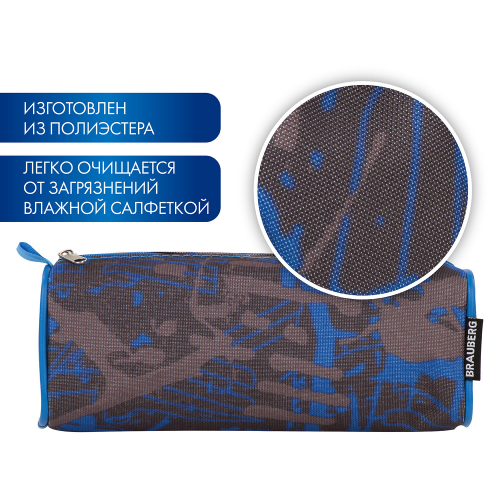 Пенал BRAUBERG "Элемент" выполнен из прочного мягкого материала в серо-синих тонах. Пенал вмещает до 50 канцелярских принадлежностей стандартных размеров. Надежная молния оснащена удобным металлическим бегунком.