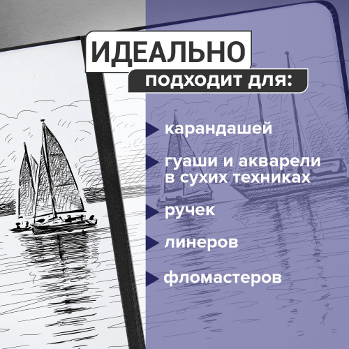 Скетчбук, слоновая кость 140 г/м2 120х120 мм, 80 л., КОЖЗАМ, резинка, BRAUBERG ART CLASSIC, белый, 113189