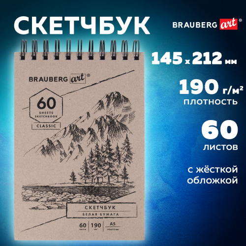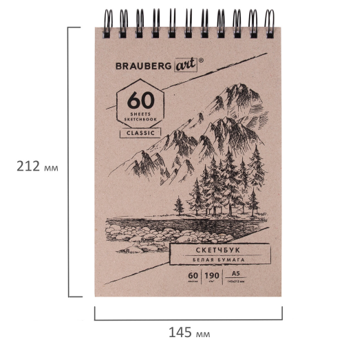 Обложка выполнена из переплетного картона картона толщиной 1,8 мм. В блокноте 60 белоснежных листов плотностью 190 г/м2, т.е. 120 возможностей воплотить свою задумку! Листы удобно скреплены спиралью - это позволяет переворачивать их на 180 градусов. Задняя подложка жесткая, что позволит делать зарисовки и наброски "на весу". Удобный формат размером 142х212 мм поместится даже в небольшую сумку.