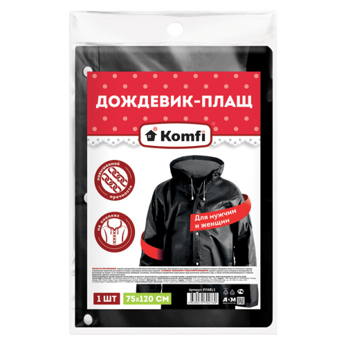 Плащ-дождевик черный на кнопках многоразовый, прочный, винил, размер универсальный, ш/к 2760, 25509