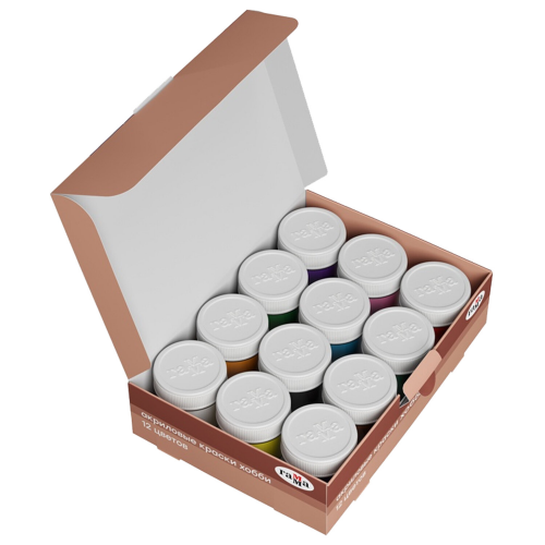 Краски акриловые декоративные ГАММА "Хобби", 12 цветов по 20 мл, в баночках, 3012198