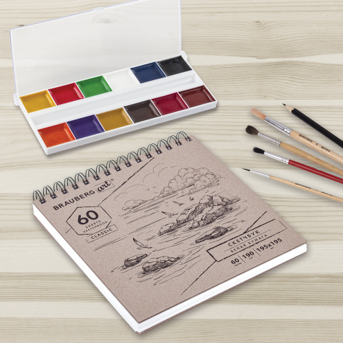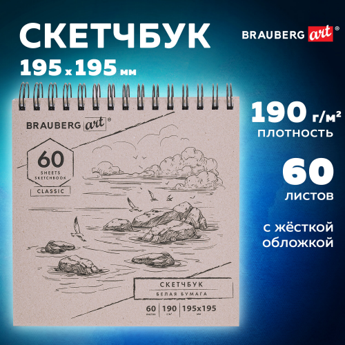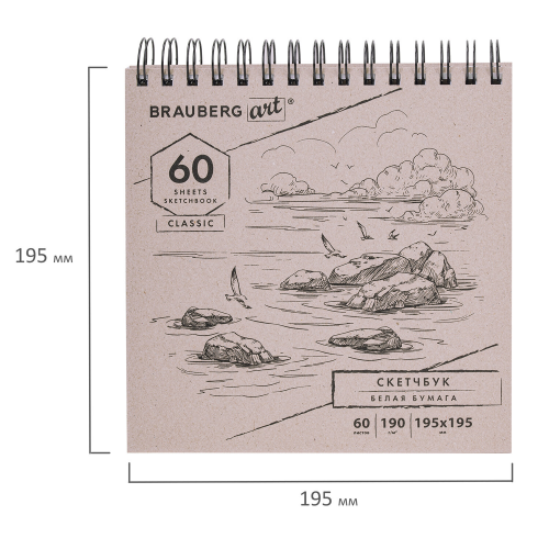 Обложка выполнена из переплетного картона картона толщиной 1,8 мм. В блокноте 60 белоснежных листов плотностью 190 г/м2, т.е. 120 возможностей воплотить свою задумку! Листы удобно скреплены спиралью - это позволяет переворачивать их на 180 градусов. Задняя подложка жесткая, что позволит делать зарисовки и наброски "на весу". Удобный формат размером 195х195 мм поместится даже в небольшую сумку.