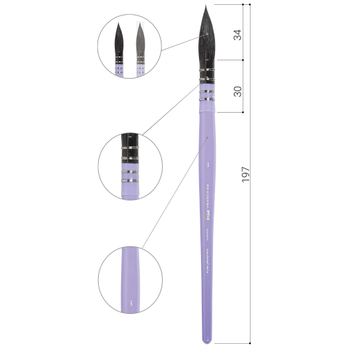 Кисти изготовлены с применением синтетики и белки. Отличаются универсальностью в использовании, обусловленной упругостью ворса и прекрасными впитывающими свойствами пучка. Короткая ручка из древесины покрыта лаком, что защищает ее от воздействия красок и влаги. Форма пучка - круглая № 8. Номер кисти соответствует реальной ширине пучка в миллиметрах. Упаковка - ОПП-пакет с европодвесом и картонной подложкой.