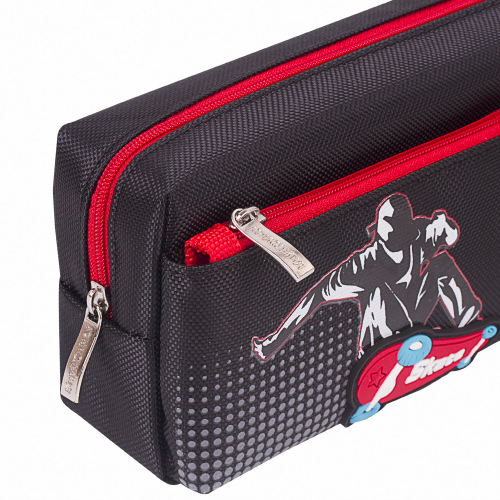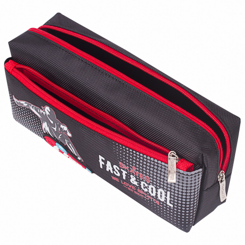 Выполнен из прочного полиэстера. Размер пенала 21х6х9 см. Имеет два вместительных отделения. Застегивается на молнию с металлическим бегунком.