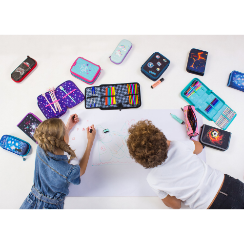 Материал снаружи и внутри - полиэстер с цветной печатью, ярким дизайном. Основа пенала - плотный картон. Такая конструкция отличается износостойкостью и прочностью, поможет защитить канцелярские принадлежности от повреждений.
