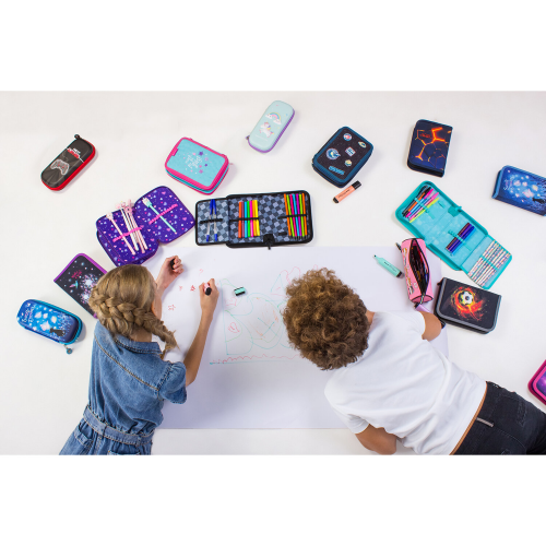 Материал снаружи и внутри - полиэстер с цветной печатью, ярким дизайном. Основа пенала - плотный картон. Такая конструкция отличается износостойкостью и прочностью, поможет защитить канцелярские принадлежности от повреждений.