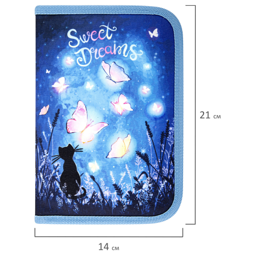 Пенал имеет стандартный размер 21х14 см, что позволяет легко размещать его в ранце или рюкзаке, сумке.