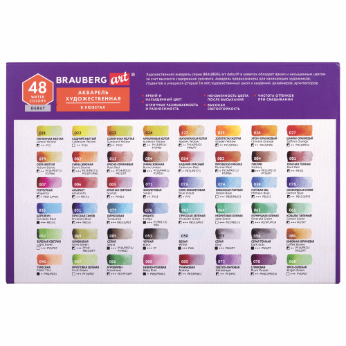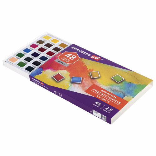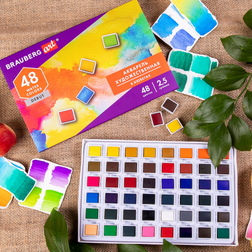 В наборе 48 цветов в кюветах по 2,5 грамма: